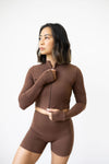 Meet your new go-to layer, the Elemental Crop Jacket. Designed with ultra-light fabric and thumb holes for added comfort, this jacket is perfect for any weather. Its fast-drying feature ensures you stay comfortable and dry, whether you're on a morning run or an evening stroll. Stylish, versatile, and ready for anything, it's the ultimate addition to your active wardrobe.